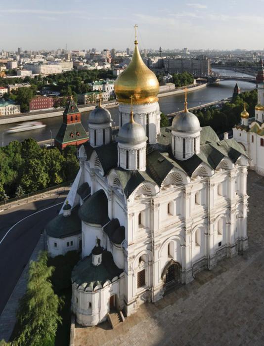 Архангельский собор – уникальный памятник русской архитектуры, который входит в комплекс музея-заповедника «Московский Кремль». Храм был построен в 1508 году на месте небольшой белокаменной церкви XIII века и до XVIII века служил местом погребения русских правителей.
